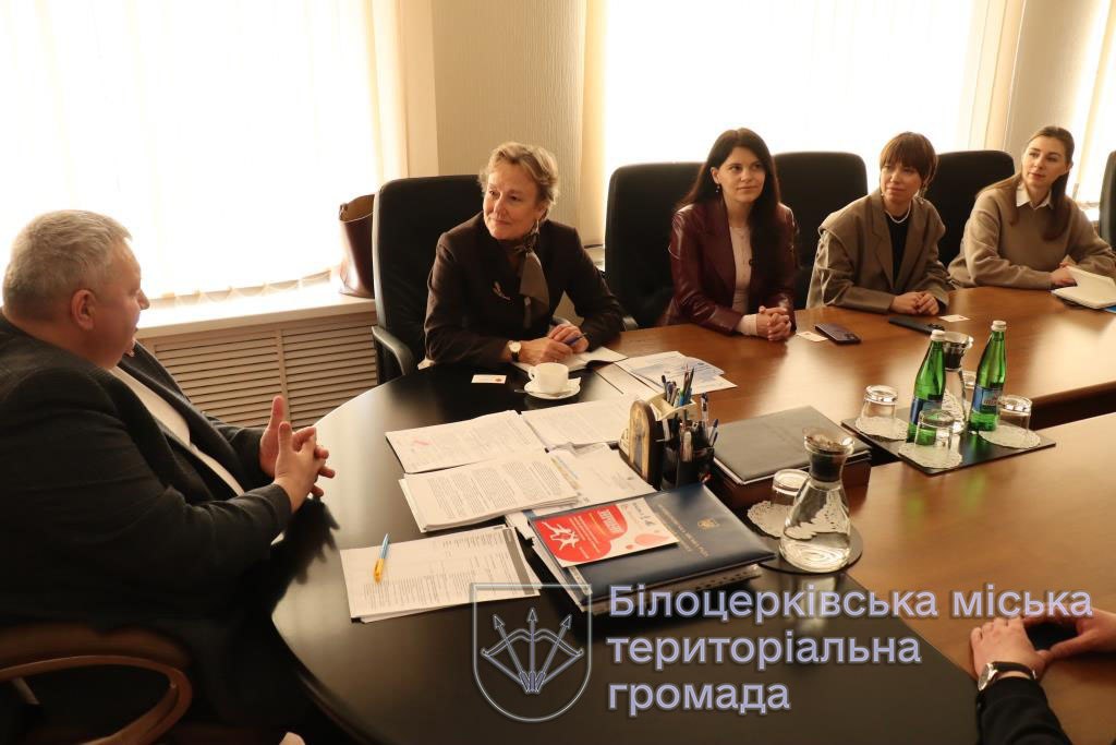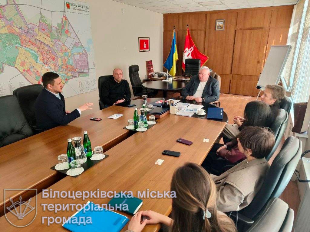 Під час зустрічі Володимир Вовкотруб ознайомив делегацію з основними здобутками та викликами, які на сьогодні постають перед нашою громадою, пріоритетними питаннями життя громади. Зокрема, розпочато будівництво нового закладу дошкільної освіти на масиві Піщаному, стартував пілотний проєкт зі створення житлового комплексу на тисячу квартир для переселенців з Маріуполя; розвиток Індустріального парку «Біла Церква», його співпраця із комунальними закладами загальної середньої освіти шляхом підтримки сучасних кабінетів технологій для уроків трудового навчання тощо. Серед викликів - ліквідація наслідків агресії рф у громаді, низька народжуваність, виїзд жінок, дітей та молоді за кордон тощо.