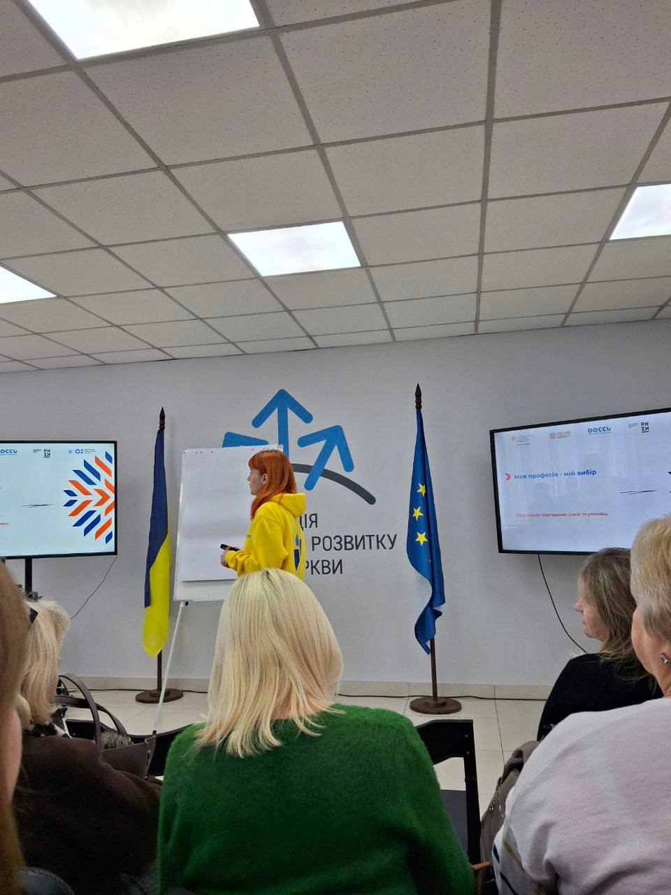 Учасникам було презентовано 7 кроків спільнодії щодо впровадження сучасної системи профорієнтації в громадах у межах Національного пілотування системи профорієнтації дітей та підлітків. Окрему увагу приділено результатам опитування учнів і учениць закладів загальної середньої освіти, проведеного в межах дослідження стейкхолдерів профорієнтаційної роботи в територіальній громаді.