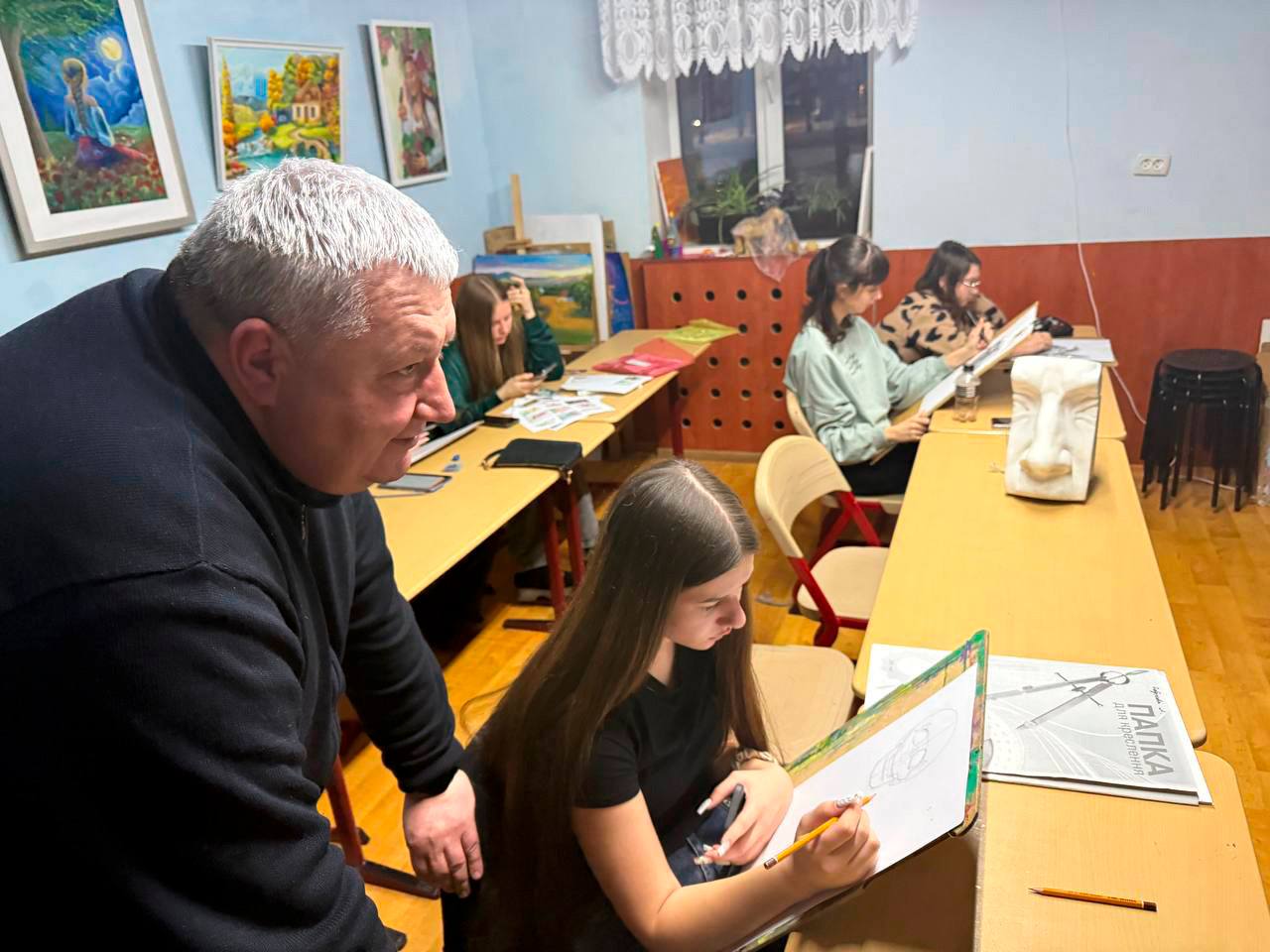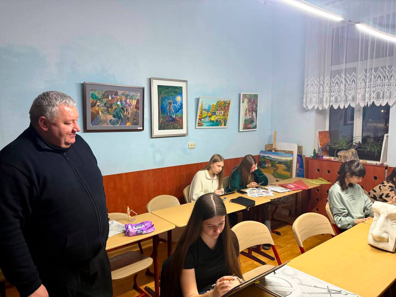 Секретар міської ради поспілкувався з юними художниками, цікавлячись творчими задумами. Це спілкування підкреслило, що школа мистецтв - це не лише сцена, а й простір для щоденної кропіткої праці, де виховується майбутня культурна еліта України.